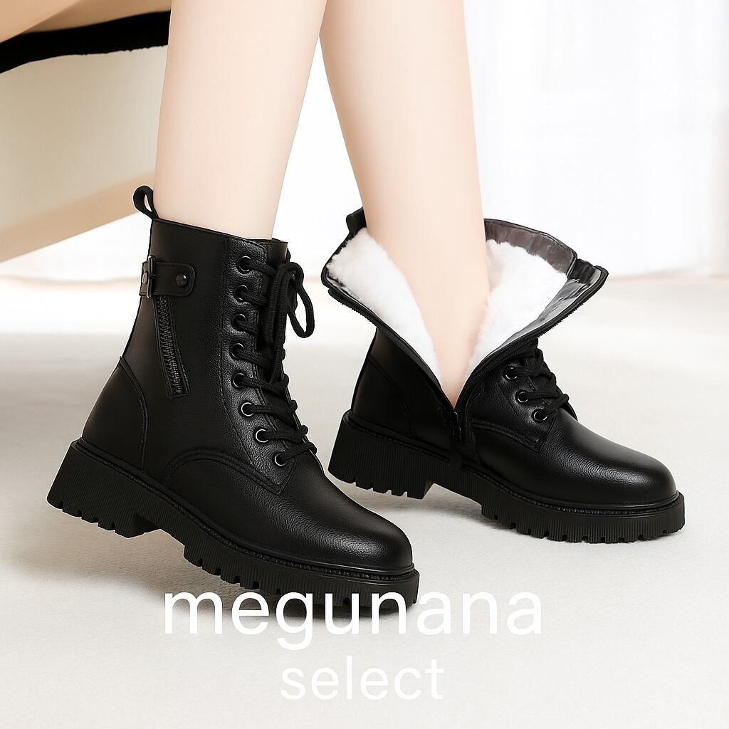 暖か裏起毛レースアップブーツ レディース|厚底ソールで歩きやすい 防寒・軽量 秋冬カジュアル 通勤・お出かけ【MeguNana Select】
