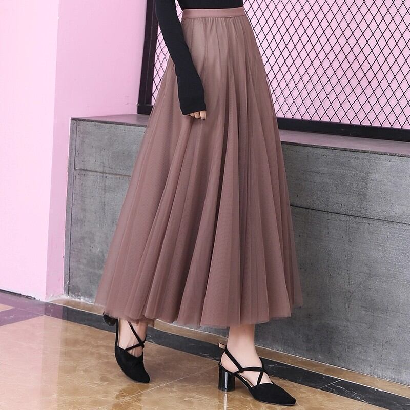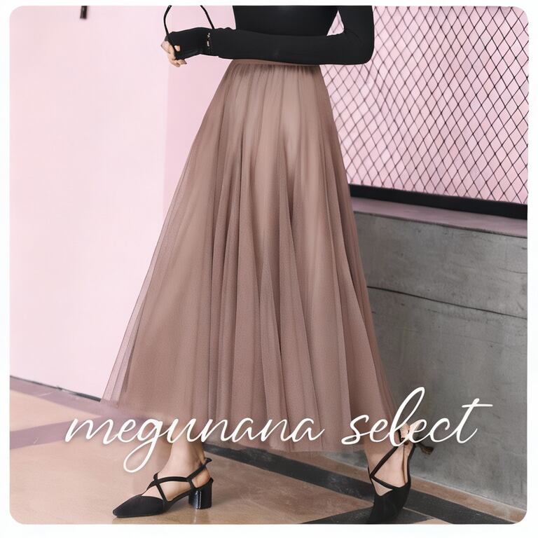 メッシュロングスカート レディース|軽やかで上品な透け感 Aライン ハイウエスト ミディ丈【ブラック/ライトコーヒー/グレー】【MeguNana select】