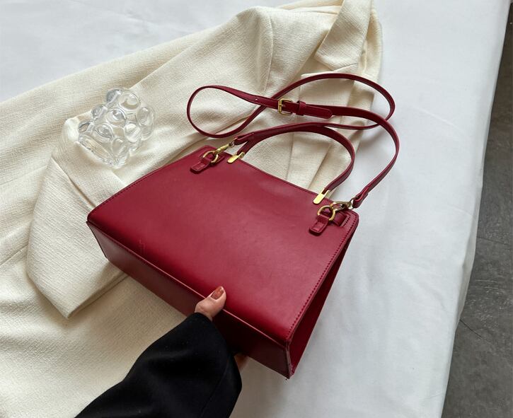シンプルで洗練されたデザインが魅力の上品ハンドバッグ。